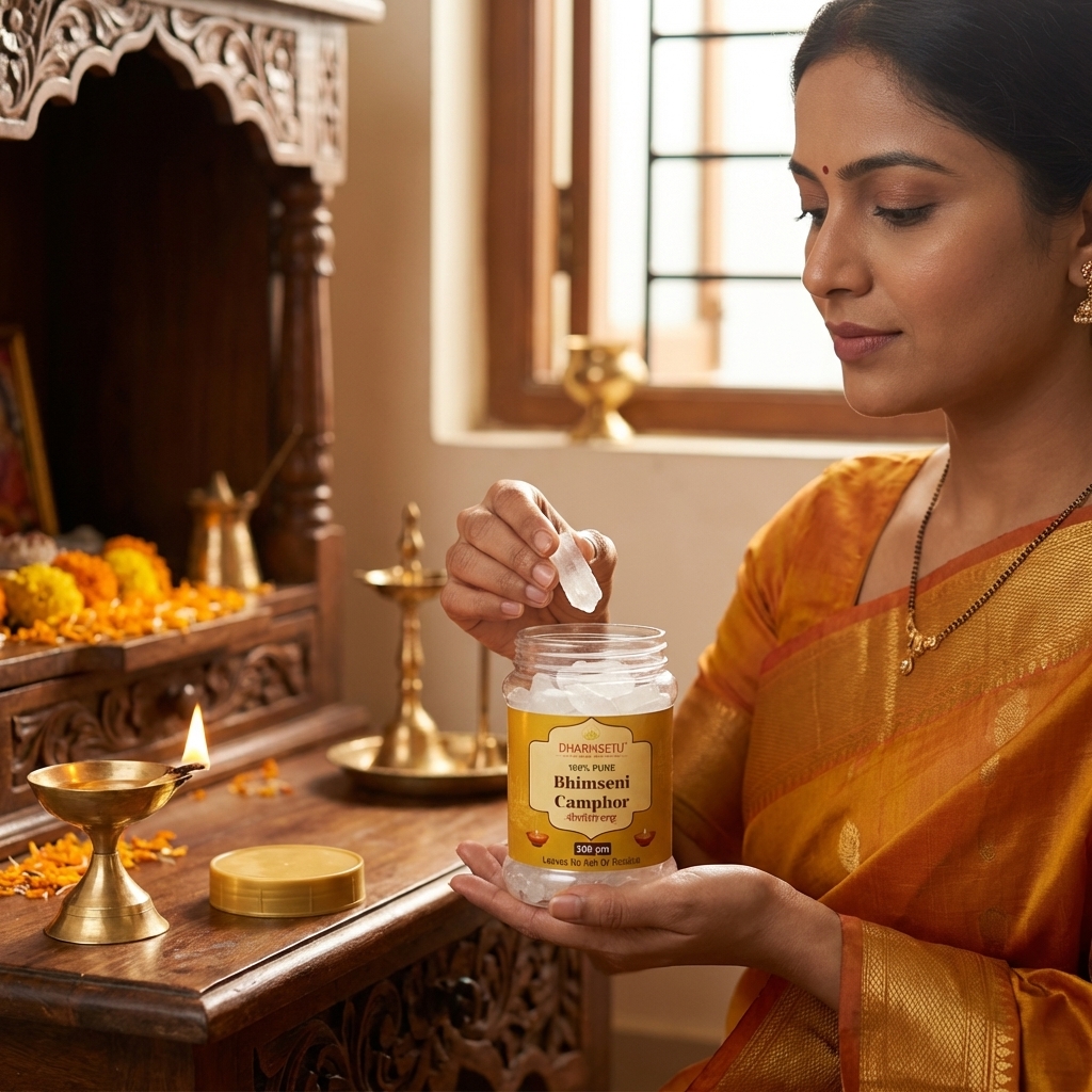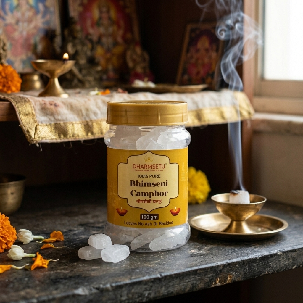 Experience the divine purity of Bhimseni Camphor (Pacha Kapoor) in a convenient 100g pack. Unlike regular synthetic camphor, our Bhimseni camphor is completely unadulterated and crystalline. It diffuses beautifully, leaving absolutely no black ash or residue behind.
