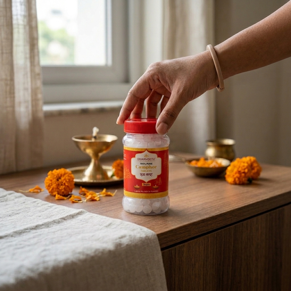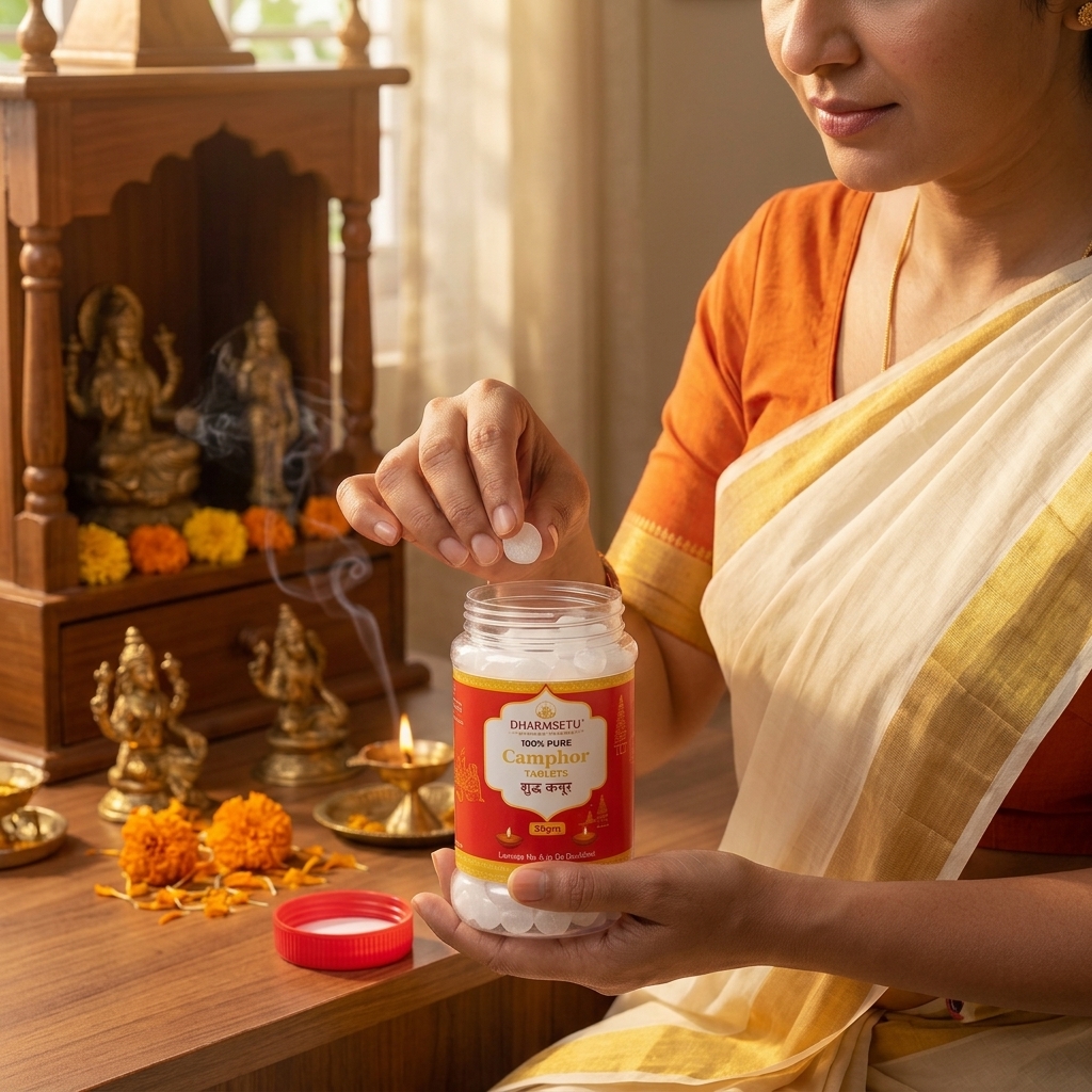 Camphor is considered sacred in Hindu rituals and is used to purify surroundings and invite positive energy.