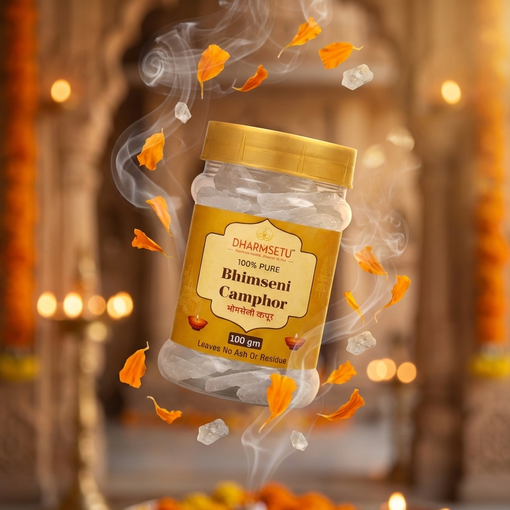 Experience the divine purity of Bhimseni Camphor (Pacha Kapoor) in a convenient 100g pack. Unlike regular synthetic camphor, our Bhimseni camphor is completely unadulterated and crystalline. It diffuses beautifully, leaving absolutely no black ash or residue behind.